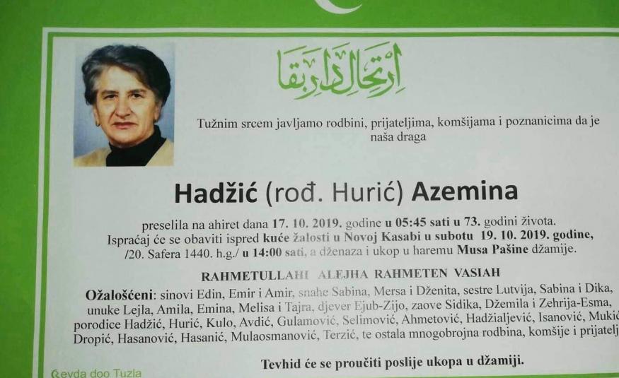 Na Ahiret preselila Hadžić (rođ. Hurić) Azemina
