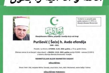 Na Ahiret preselio Purišević (Šaćo) h. Avdo efendija
