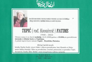 Na Ahiret preselila Tepić (rođ. Kovačević) Fatime