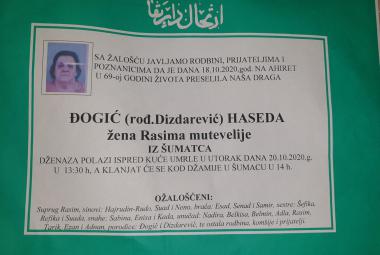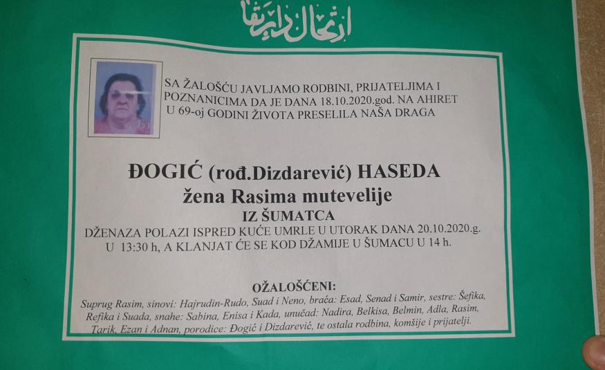 Na Ahiret preselila Đogić (rođ. Dizdarević) Haseda