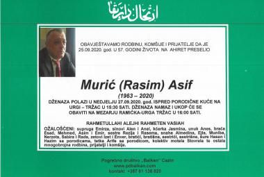 Na Ahiret preslio Murić (Rasim) Asif