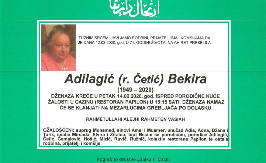 Na Ahiret preselila Adilagić (rođ.Četić) Bekira