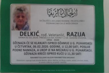 Na Ahiret preselila Delkić (rođ. Veletanlić) Razija
