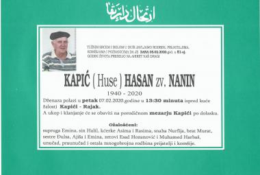 Na Ahiret preselio Kapić (Huse) Hasan zvani Nanin