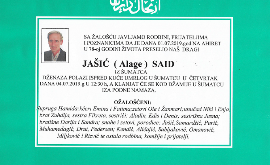 Na Ahiret preselio Jašić (Alage) Said