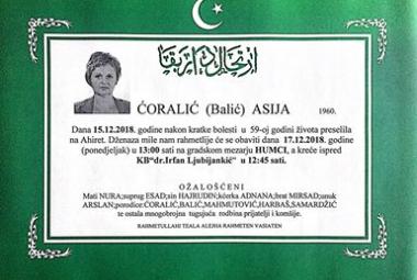 Na Ahiret preselila Ćoralić (Balić) Asija