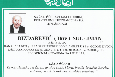 Na Ahiret preselio Dizdarević ( Ibre ) Sulejman