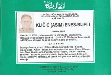 Na Ahiret preselio Kličić (Asim) Enes - Bijeli