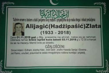 Na Ahiret preselila Alijagić (Hadžipašić) Zlata