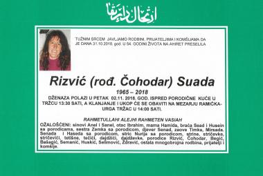 Na Ahiret preselila Rizvić (rođ. Čohodar) Suada