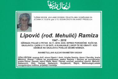 Na Ahiret preselila Lipović ( rođ. Mehulić) Ramiza