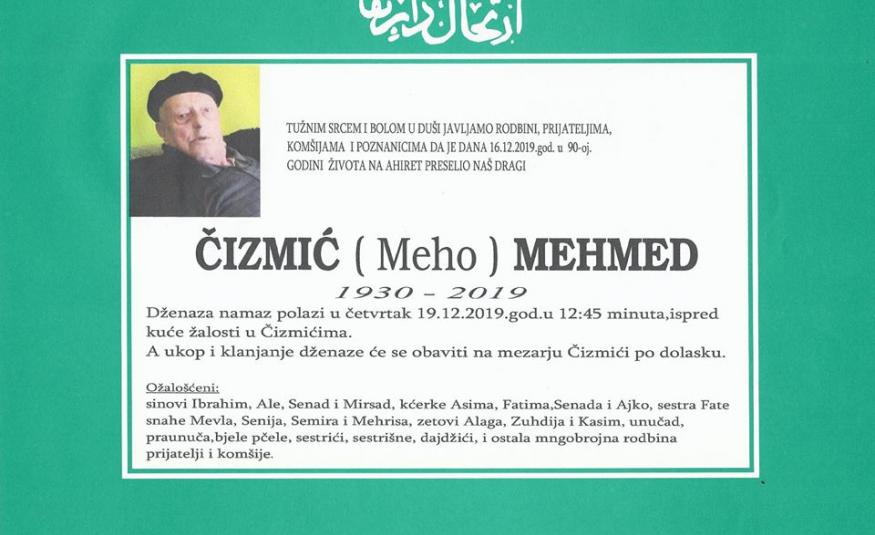Na Ahiret preselio Čizmić (Meho) Mehmed
