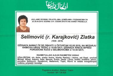 Na Ahiret preselila Selimović (rođ.Karajković) Zlatka