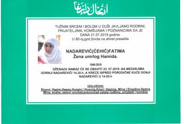 Na Ahiret preselila Nadarević (Ćehić) Fatima