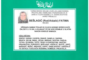 Na Ahiret preselila Bešlagić (rođ.Kržalić) Fatima