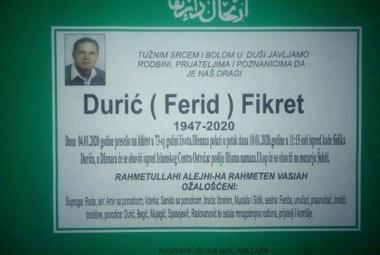 Na Ahiret preselila Dervić (rođ.Duraković) Sefija