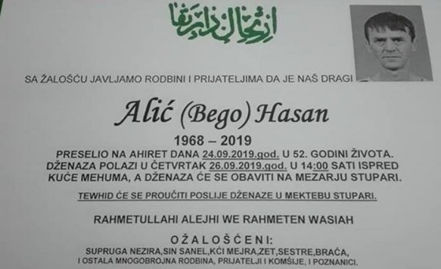 Na Ahiret preselio Alić (Bego) Hasan