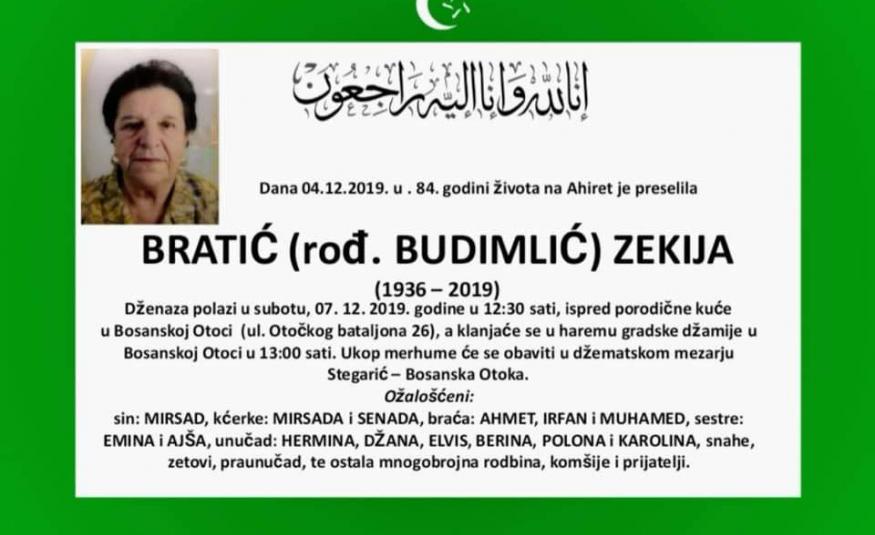 Na Ahiret preselila Bratić (rođ. Budimlić) Zekija