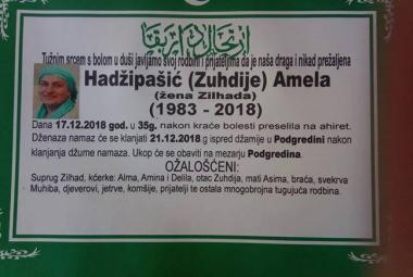 Na Ahiret preselila Hadžipašić (Zuhdije) Amela