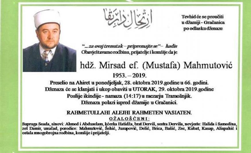 Na Ahiret preselio hadži Mirsad ef. Mahmutović