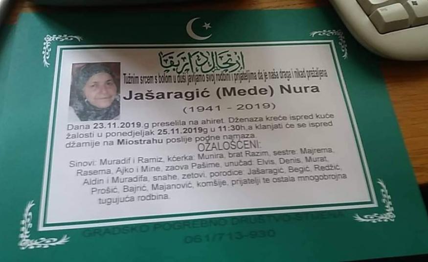 Na Ahiret preselila Jašaragić (Mede) Nura