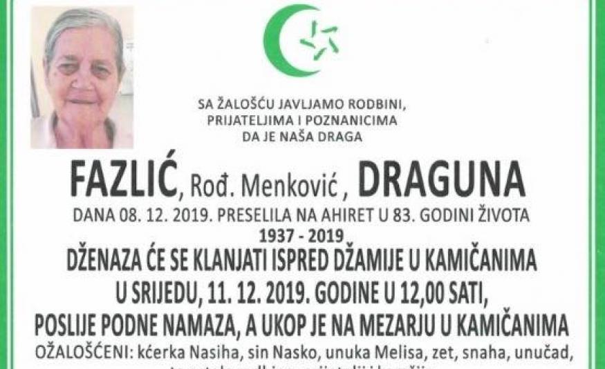Na Ahiret preselila Fazlić (rođ. Menković) Draguna