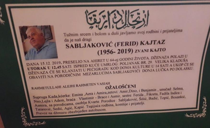 Na Ahiret preselio Sabljaković (Ferid) Kajtaz