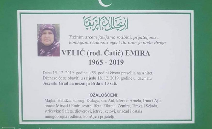 Na Ahiret preselila Velić (rođ. Ćatić) Emira
