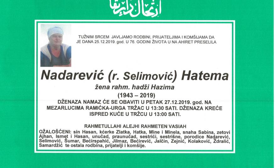 Na Ahiret preselila Nadarević (Selimović) Hatema