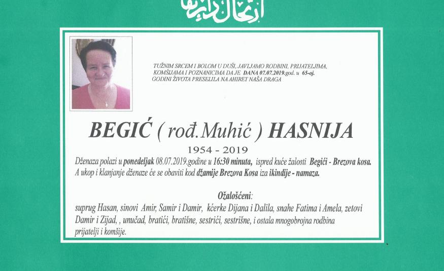 Na Ahiret preselila Begić (rođ. Muhić) Hasnija