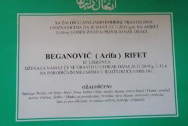 Na Ahiret preselio Beganović (Arifa) Rifet