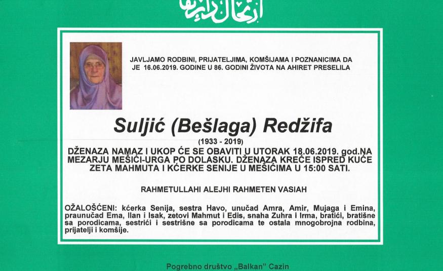 Na Ahiret preselila Suljić (Bešlaga) Redžifa