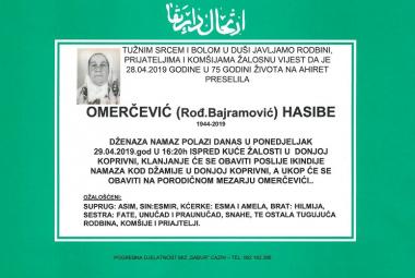 Na Ahiret preselila Omerčević (rođ.Bajramović) Hasibe
