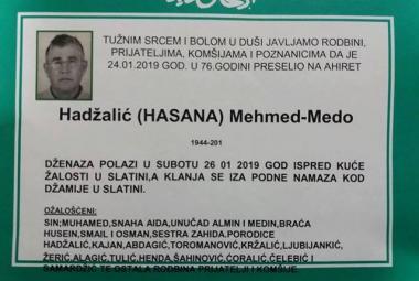Na Ahiret preselio Hadžalić (Hasana) Mehmed-Medo