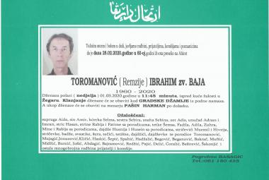 Na Ahiret preselio Toromanović (Remzije) Ibrahim zv. Baja
