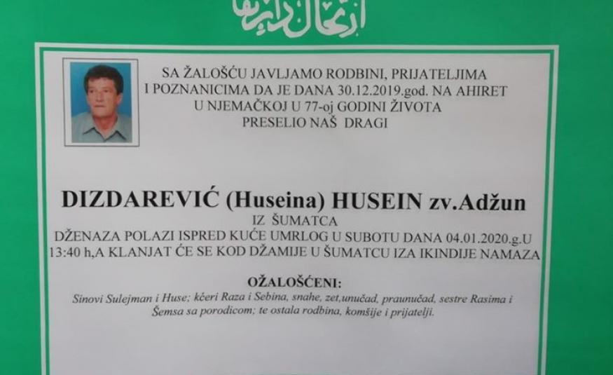 Na Ahiret preselio Dizdarević (Huseina) Husein zvani Adžun