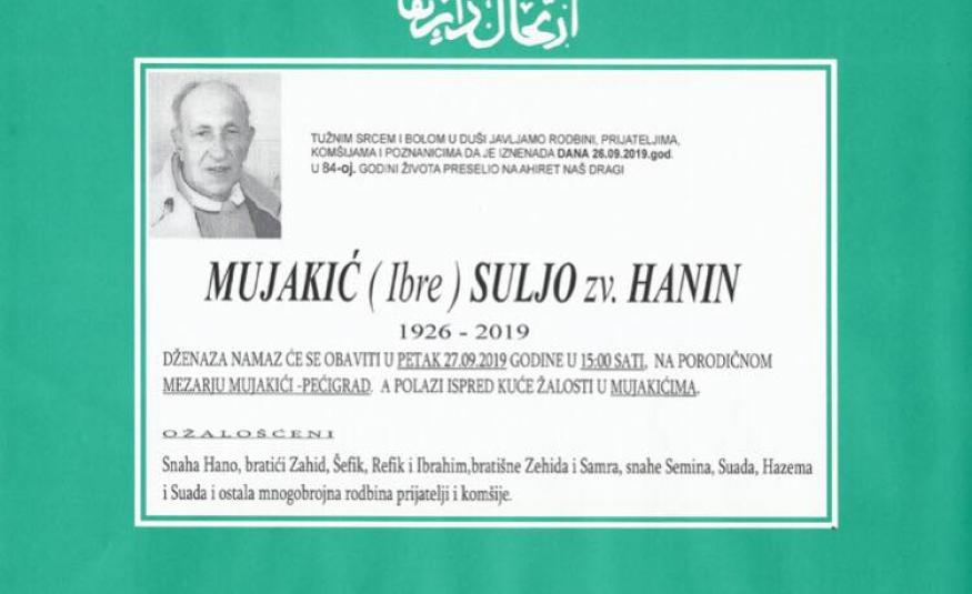 Na Ahiret preselio Mujakić (Ibre) Suljo zv. Hanin