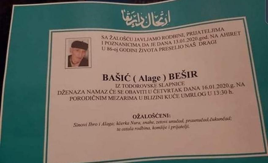 Na Ahiret preselio Bašić (Alage) Bešir