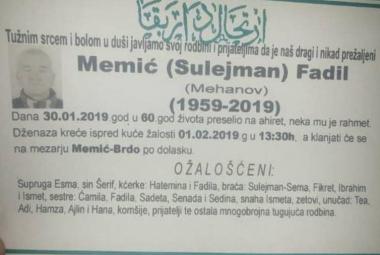 Na Ahiret preselio Memić (Sulejman) Fadil