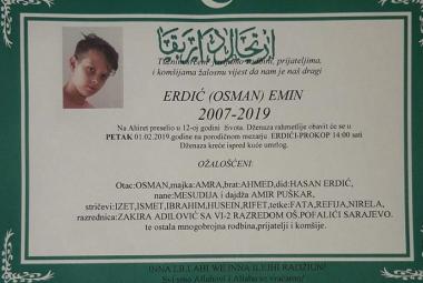 U 12. godini života na Ahiret preselio Erdić (Osman) Emin