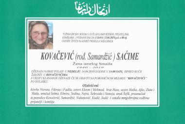 Na Ahiret preselila Kovačević (rođ. Samardžić) Saćime