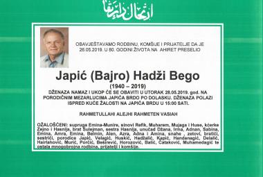 Na Ahiret preselio Japić (Bajro) Hadži Bego