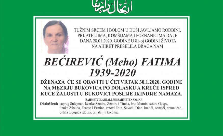 Na Ahiret preselila Bećirević (Meho) Fatima