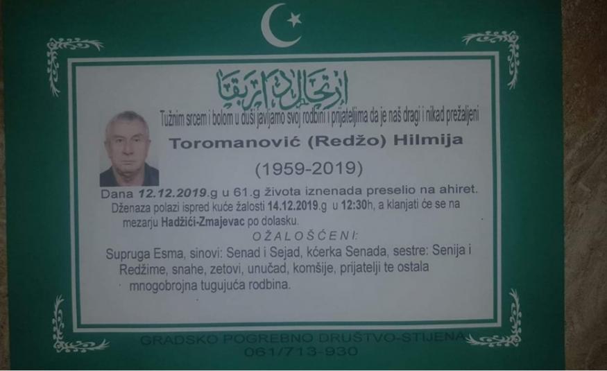 Na Ahiret preselio Toromanovic (Redžo) Hilmija