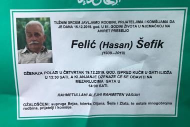 Na Ahiret preselio Felić (Hasan) Šefik