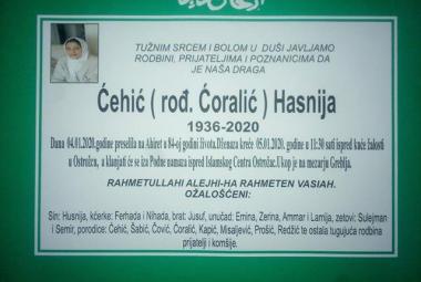 Na Ahiret preselila Ćehić (rođ.Ćoralić) Hasnija