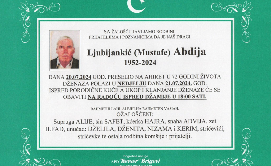 Na Ahiret preselio Ljubijankić (Mustafe) Abdija