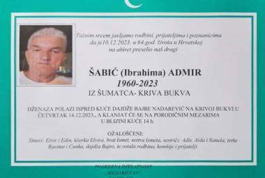 Na Ahiret preselio Šabić (Ibrahima) Admir