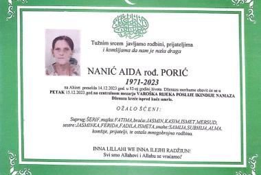 Na Ahiret preselila Nanić Aida (r.Porić)