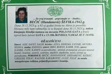 Na Ahiret preselila Bečić (Handanović) Šefika